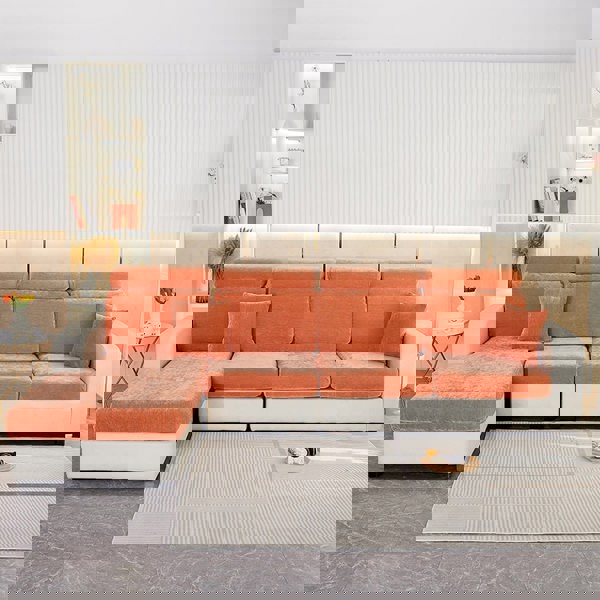 Anyhouz Anyseat Sofa Cover Rustic Orange L-Shape Polyester Chenille Thick Stretchable Cushion For Living Room Plus Size Extra Large