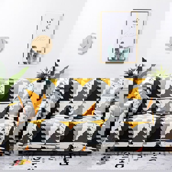 Anyhouz Anyseat Sofa Cover Yellow White Geometric Style 2 Seater