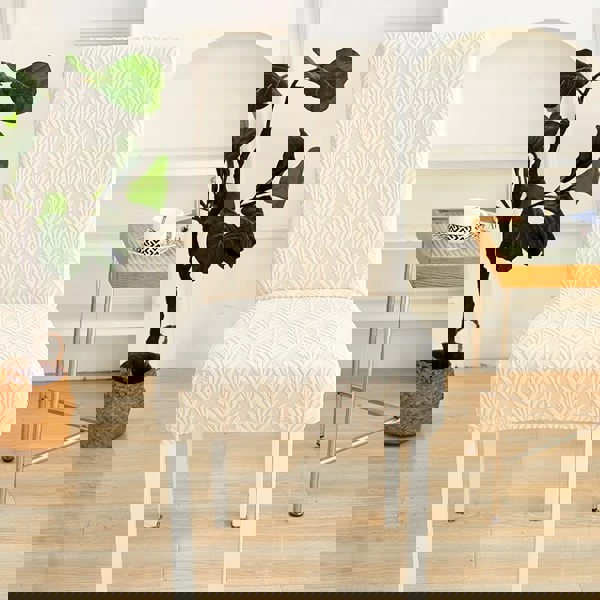 Anyseat Chair Cover Beige Series Leaf Lines Design with Elastic Material for Dining Room Kitchen Wedding Hotel Banquet Restaurant