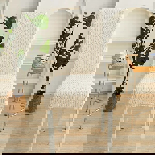Anyseat Chair Cover Beige Wavey Lines Design with Elastic Material for Dining Room Kitchen Wedding Hotel Banquet Restaurant