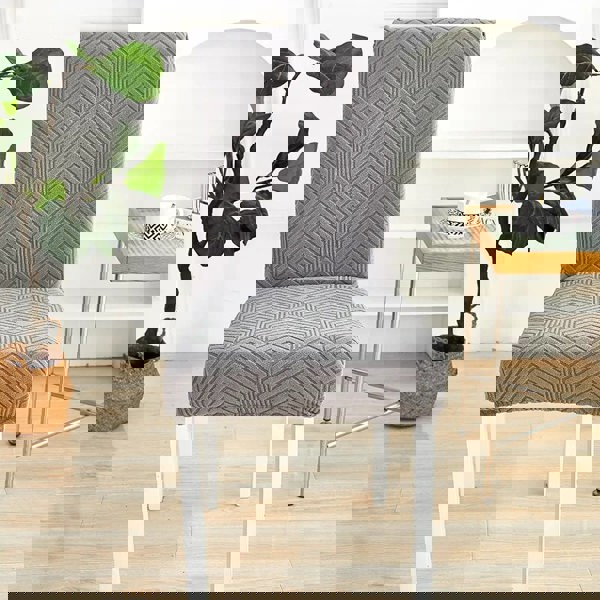 Anyseat Chair Cover Dark Grey Geometric Lines Design with Elastic Material for Dining Room Kitchen Wedding Hotel Banquet Restaurant