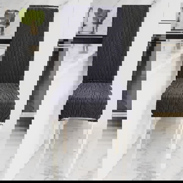 Anyseat Chair Cover Dark Grey Linear Design with Anti-Dirt and Elastic Material for Dining Room Kitchen Wedding Hotel Banquet Restaurant