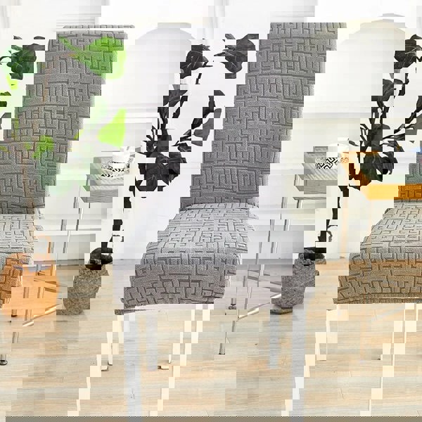 Anyseat Chair Cover Dark Grey Square Geometric Design with Elastic Material for Dining Room Kitchen Wedding Hotel Banquet Restaurant