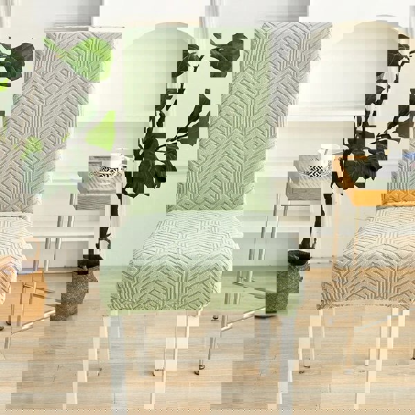 Anyseat Chair Cover Light Green Geometric Lines Design with Elastic Material for Dining Room Kitchen Wedding Hotel Banquet Restaurant