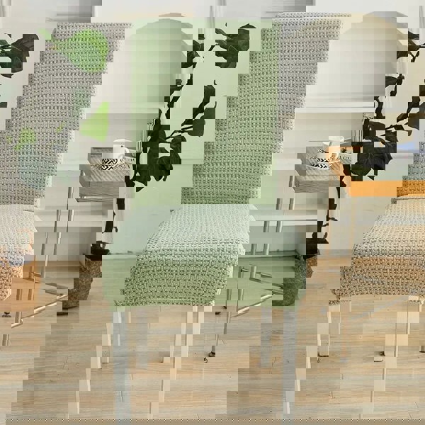 Anyseat Chair Cover Light Green Micro Knitted Design with Elastic Material for Dining Room Kitchen Wedding Hotel Banquet Restaurant