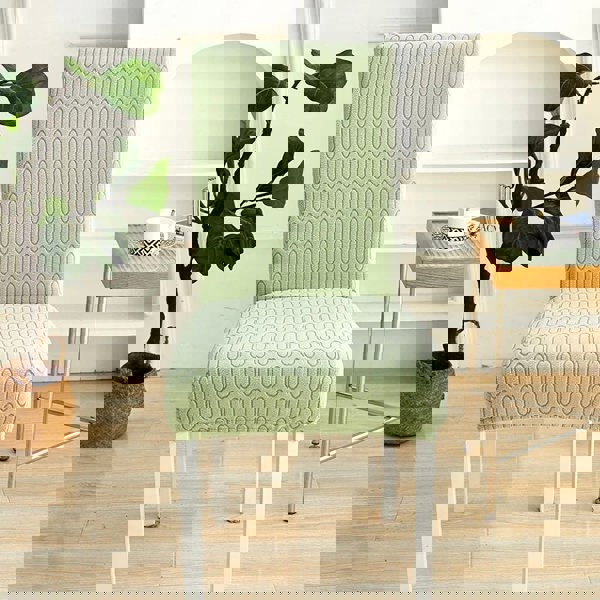 Anyseat Chair Cover Light Green Wavey Lines Design with Elastic Material for Dining Room Kitchen Wedding Hotel Banquet Restaurant