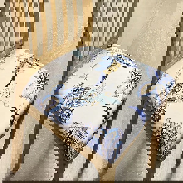 Anyseat Chair Cover White Blue Floral Leaf Print Stretch Seat Cover for Home Dinning Kitchen Washable Removable