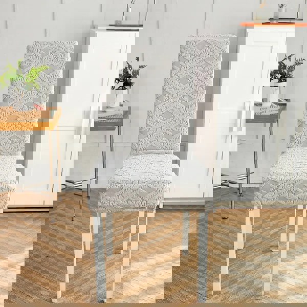 Anyseat Light Grey Knitted Veins Elastic Chair Cover for Dining Room