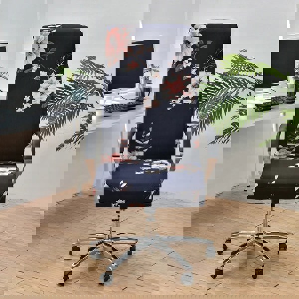 Anyseat Office Chair Cover Black Floral Large Non-Slip Rotating Seat Case Universal Armrest Chair Protector