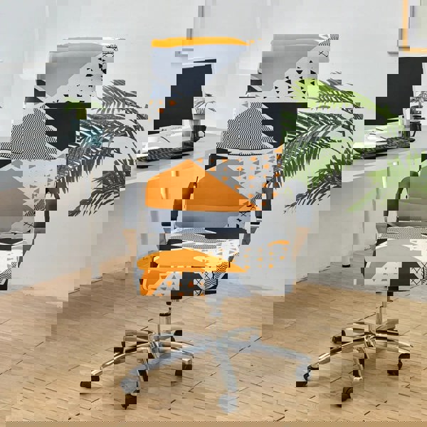 Anyseat Office Chair Cover Orange White Geometric Large Non-Slip Rotating Seat Case Universal Armrest Chair Protector