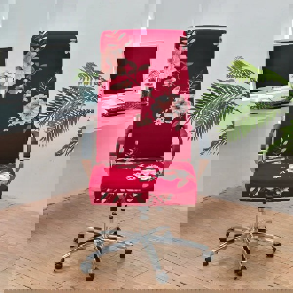 Anyseat Office Chair Cover Red Floral Large Non-Slip Rotating Seat Case Universal Armrest Chair Protector