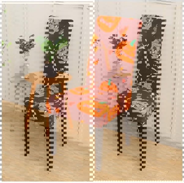 Anyseat Orange Pumpkin Twig Elastic Chair Cover for Dining Room