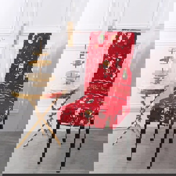 Anyseat Red Little Santa Maroon Tree Elastic Chair Cover for Dining Room