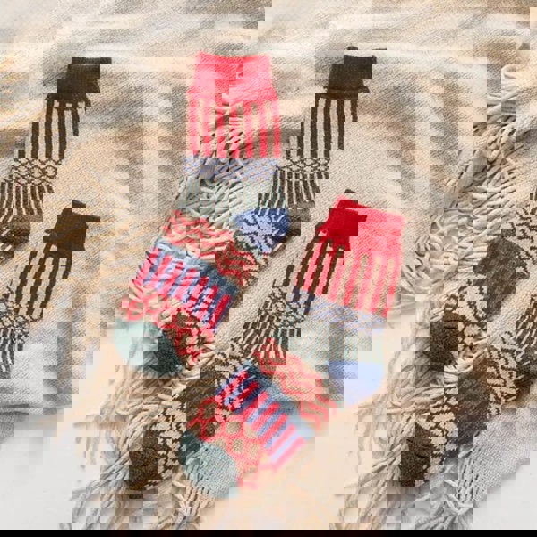 Anysox 5 Pairs Size 5-9 Fashion Socks Colorful Wind-Flowers Cotton Winter Thick Warm Wool Casual for Women Red