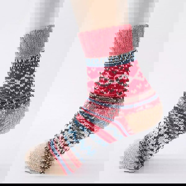 Anysox 5 Pairs Size 5-9 of Fashion Thick Warm wool Women Socks Red Colored Casual National Wind Flower Designed Cotton For Men Woman Foot Accessories