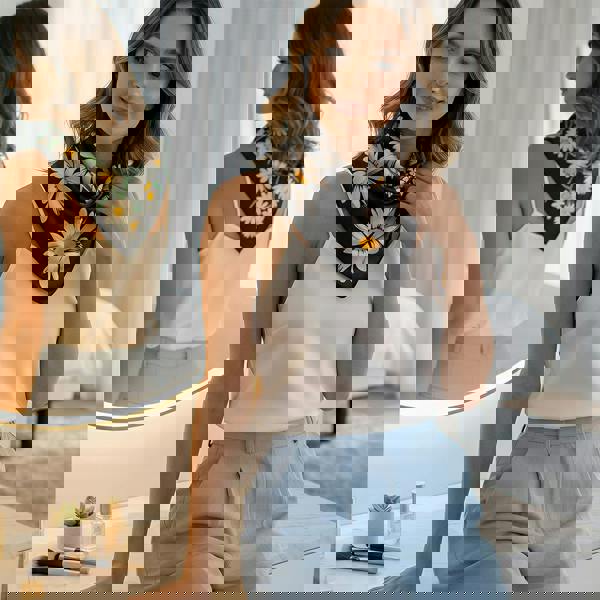 Bring a polished finish to everyday looks with the Anyyou Fashion Premium Satin Square Scarf. Designed in a daisy print on a black ground, this square style is an easy way to add colour and pattern to your wardrobe, whether worn neatly at the neck, tied to suit your outfit, or styled as a light wrap.
