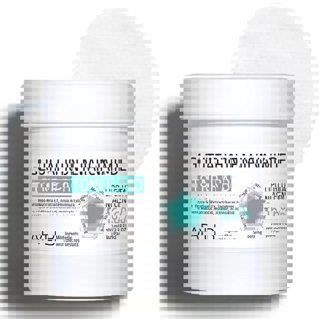 APLB Glutathione Niacinamide Toner Pad, a multitasking treatment soaked in a powerful blend of 16.