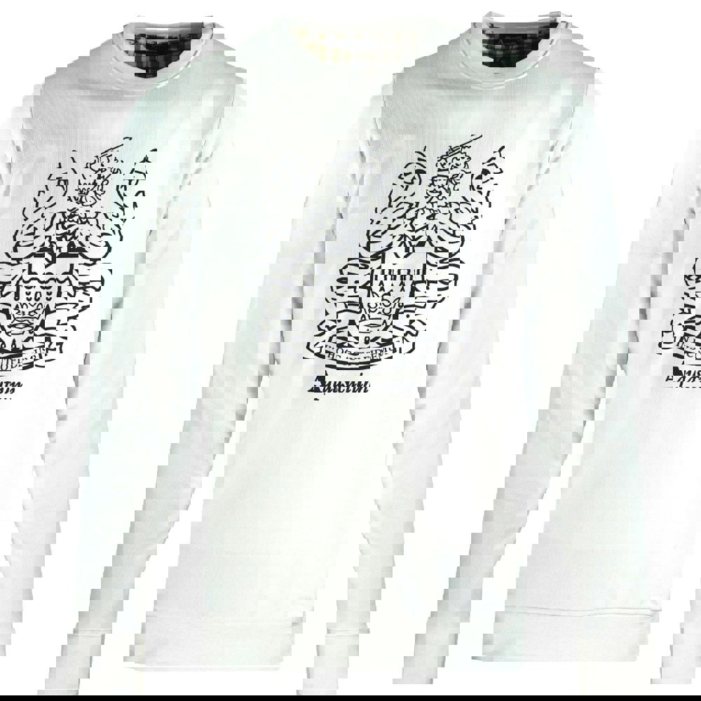 Elevate your wardrobe with the Aquascutum Large Crest Crew Neck White Sweatshirt, expertly crafted in Italy for superior quality and style. This regular fit jumper features an iconic large crest design, adding a touch of heritage to your casual look. The elasticated collar, sleeve ends, and waist ensure a comfortable, secure fit that moves with you throughout the day. Designed to fit true to size, this sweatshirt combines timeless elegance with everyday practicality, making it a versatile addition to any outfit. Experience the perfect blend of luxury and comfort with this distinguished piece from Aquascutum.