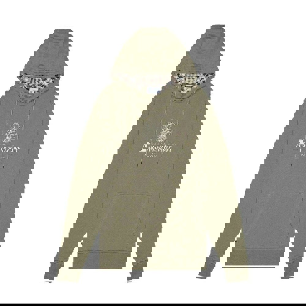 This men’s hoodie from Aquascutum comes in army green and is made from 100% cotton with a soft-touch finish. The design centres on a bold logo, paired with a hood that includes a drawstring and inner check lining. A pull-over construction keeps the look clean and easy to wear for casual days and layering.
