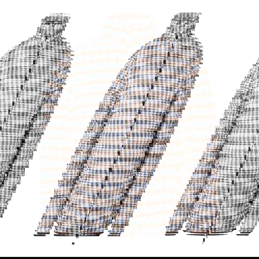 This padded jacket is made from 100% polyester in a technical fabric with a checked, quilted design. A 100gsm construction keeps the profile lightweight, while PrimaLoft fabric technology is specified.