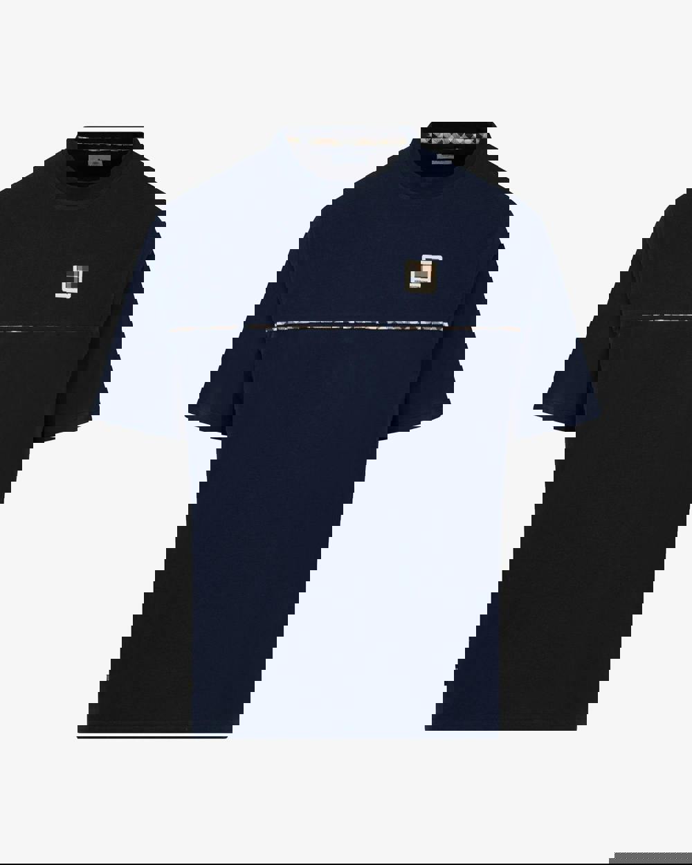 Set in navy, the design is finished with a crew neckline and a regular fit. A horizontal Club Check piping detail runs across the chest, joined by an Aquascutum Active badge applied at the chest for a clear brand sign-off.