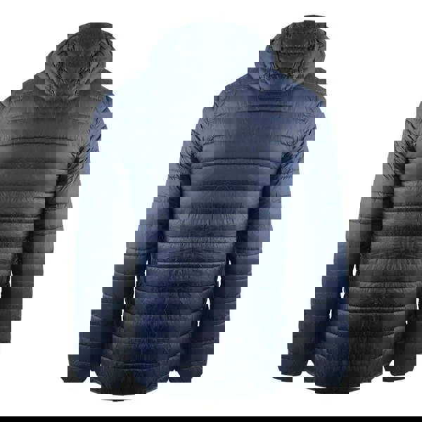 This Aquascutum London quilted jacket comes in navy blue with a plain finish and logo detailing. Made with a lightweight construction, it has a hooded neckline with a sew-on hood, long sleeves and stretch binding at the cuffs.