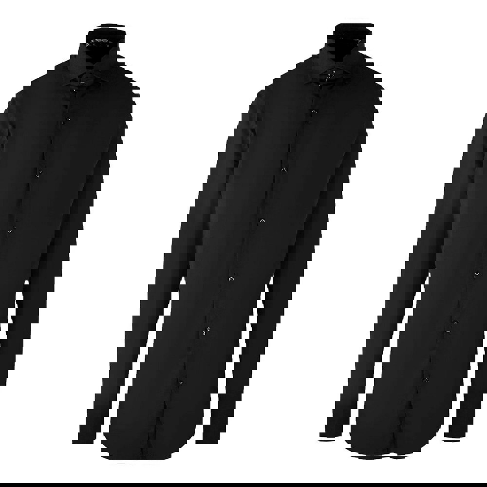 Details include a button-down fastening and a turn down collar. The cuffs are finished with a double button, and the hem is rounded for a clean, classic outline.