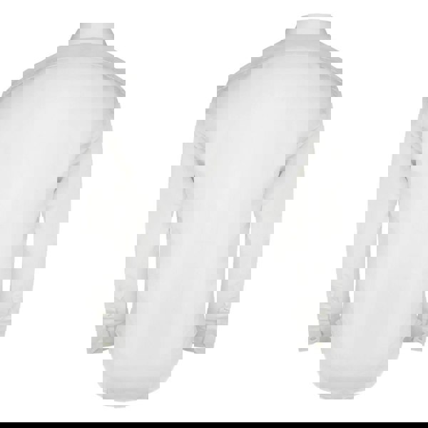 Cut with long sleeves and a turn down collar, it fastens with a button-down front and is finished with double button cuffs. A rounded hem completes the silhouette for a neat, traditional profile.