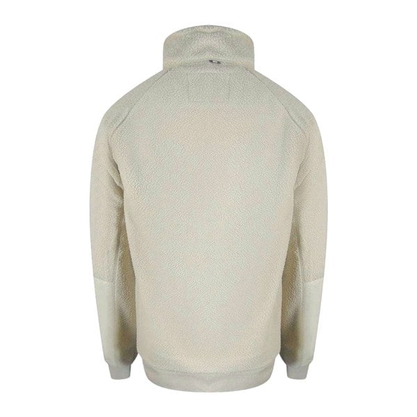 Aquascutum Mens Sherpa Active Jacket in cream, made from 100% polyester with a sherpa fabric finish. The plain design is paired with a high neck and long sleeves for a clean, streamlined look. A full zip fastening runs through the front, with a zip detail on the two side pockets for secure storage.