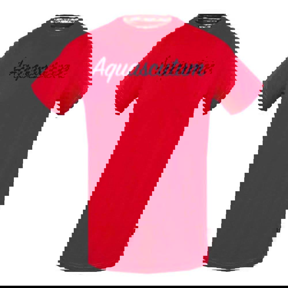 Aquascutum Mens Signature Logo T-Shirt in red with a regular fit and a crew neckline. Made from a cotton and elastane blend with stretch for comfortable everyday wear. Finished with a logo design and short sleeves for a clean, casual look.