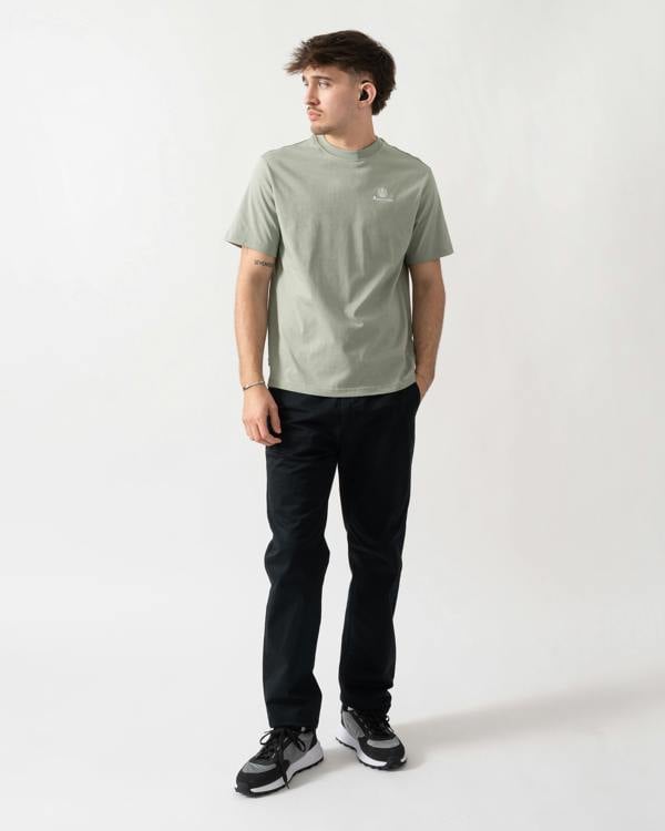 Branding is kept subtle with the Aquascutum Active logo and heritage Crest printed on the left chest. The silicone micro-injection technique creates a slightly raised finish with precise definition, adding tactile detail while maintaining the pared-back aesthetic. Shown here in Salvia 34, it sits easily within a modern casual wardrobe.
