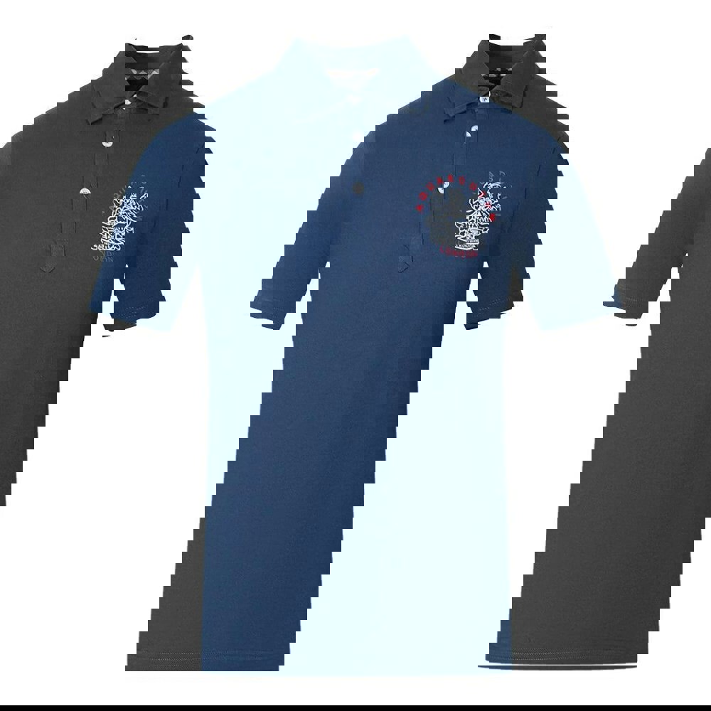 This unisex Aquascutum Aldis polo shirt comes in navy with a printed London logo design. Made from a cotton-rich blend with added elastane, it uses stretch fabric for comfortable wear. The short-sleeved silhouette is finished with a turn down collar and a three-button placket.