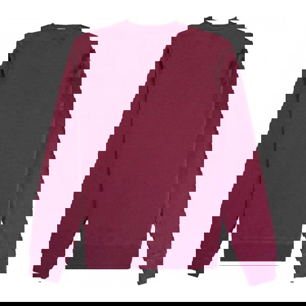 This unisex adult sweatshirt is made from 100% cotton fleece and finished in burgundy. A printed logo detail adds a clear graphic look, while the crew neck and long sleeves keep the silhouette classic and easy to wear.