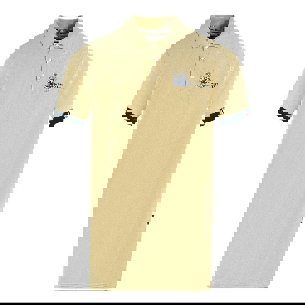 Crafted from a cotton-rich blend with added elastane, this Aquascutum London Aldis polo shirt offers a regular fit with a clean, structured look. The beige base is finished with a printed design, keeping the style distinctive while remaining easy to wear for everyday outfits.