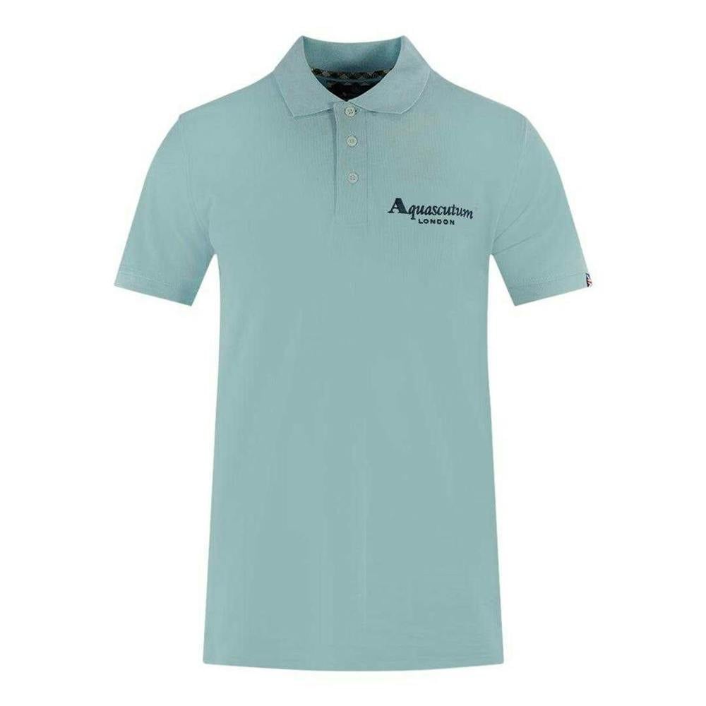 This unisex adult polo shirt from Aquascutum is made from 100% cotton and finished in light blue with a printed design. It has a turn down collar and short sleeves, offering a clean, classic shape for everyday wear.