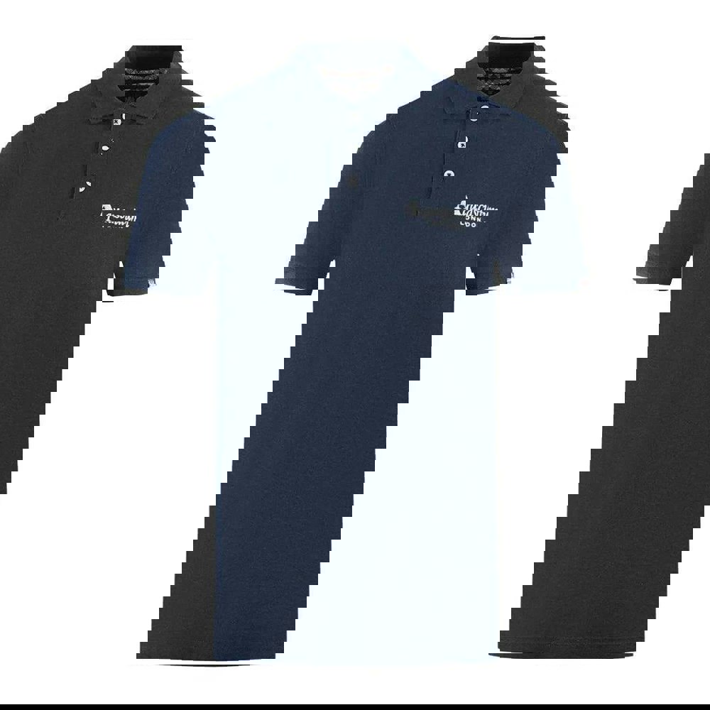 This unisex Aquascutum London Classic polo shirt comes in navy and is made from 100% cotton. The design is printed and finished with a turn down collar for a traditional polo look.