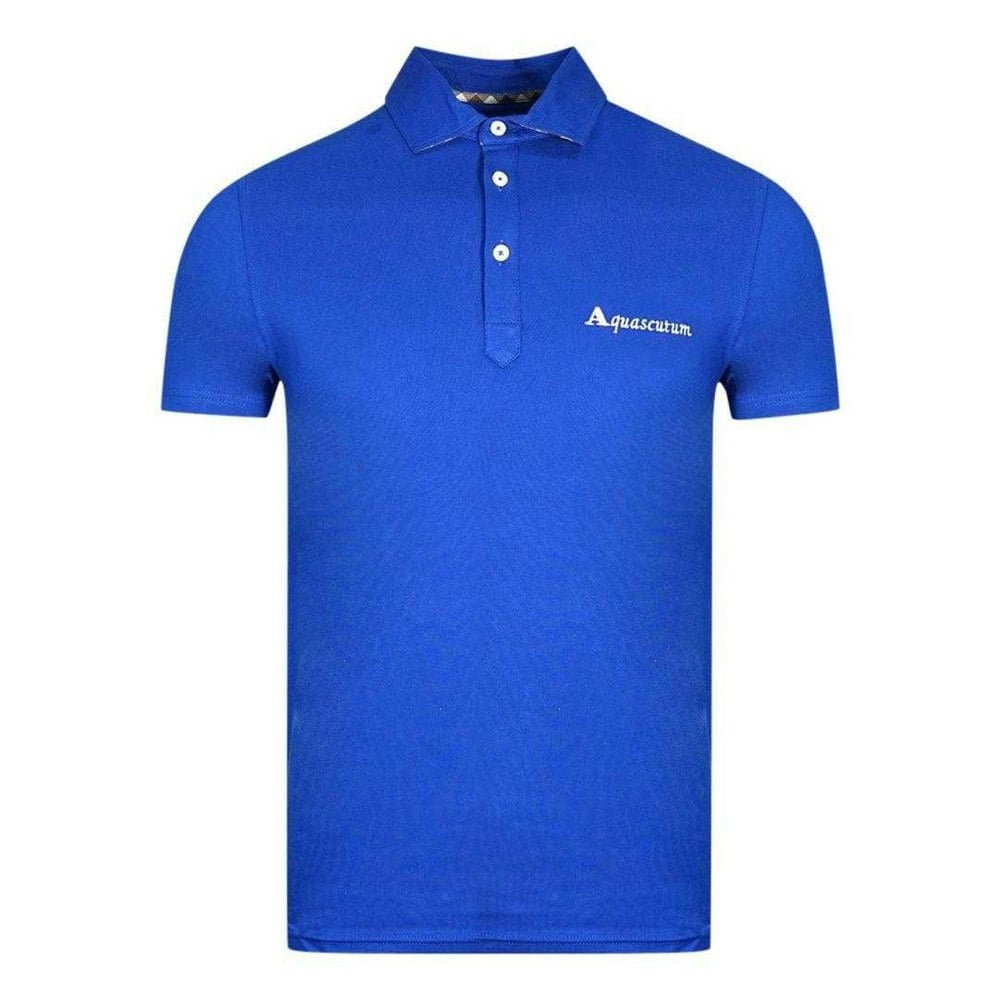 Made from 95% cotton and 5% elastane, this Aquascutum unisex polo shirt combines a stretch fabric with a regular fit. The blue design is finished with a printed signature logo for a clean, branded look.