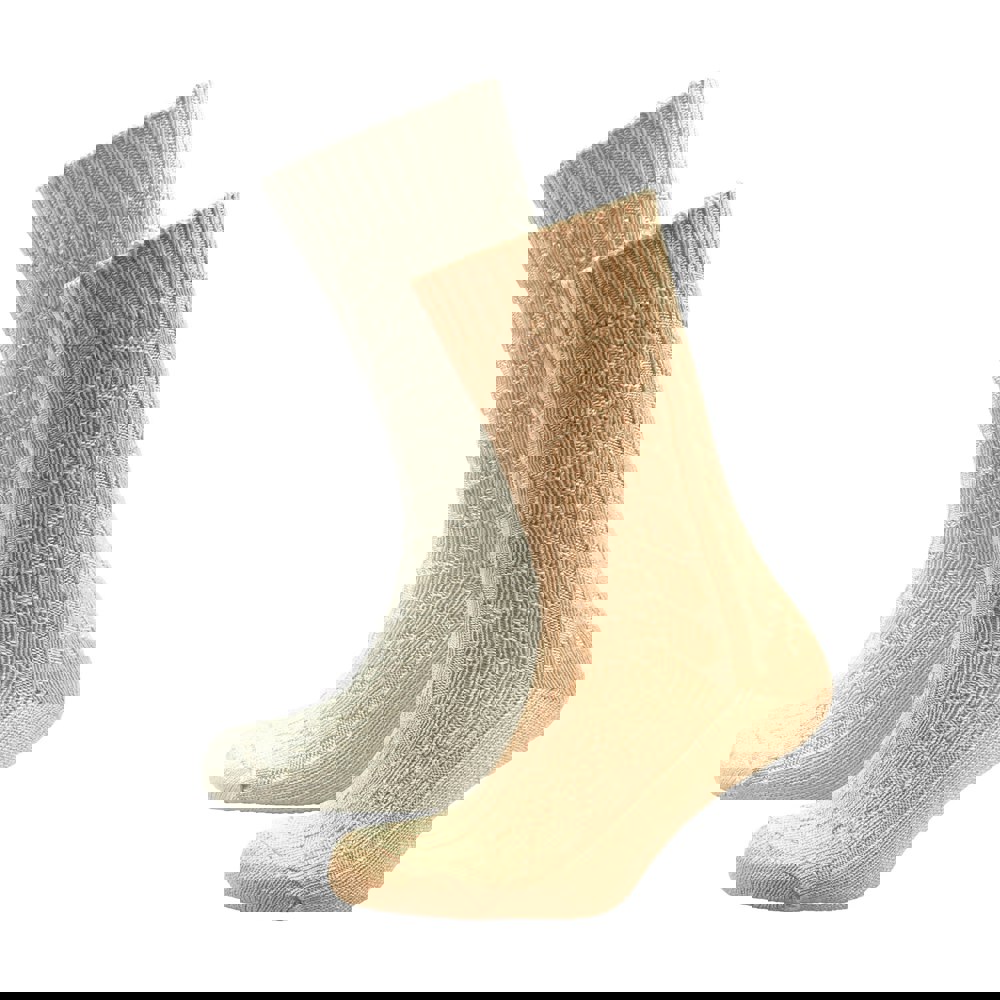 Designed to harmonize seamlessly with our esteemed Aran Traditions range, these socks feature a timeless cable design that exudes sophistication and elegance. The intertwining cables pay homage to the rich heritage of Aran knitting, adding a touch of tradition to modern-day luxury.