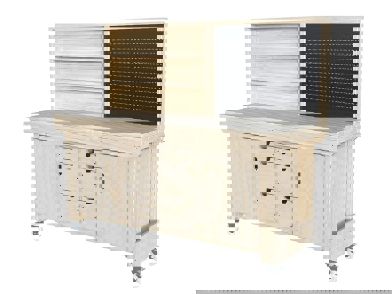 Upgrade your workspace with the Acorn Heavy-Duty Cabinet Workbench, designed for maximum durability, storage, and efficiency. Crafted from premium construction-grade CLS C16 kiln-dried timber, this heavy-duty workbench supports up to 950kg U. D. L, making it ideal for professional workshops, garages, and industrial settings. Featuring spacious drawers, a large cupboard, and an adjustable shelf, it keeps your tools and equipment organized and within reach. Available with optional heavy-duty swivel wheels, this versatile workbench offers both stability and mobility. Built to last and handcrafted in the UK – get yours today!