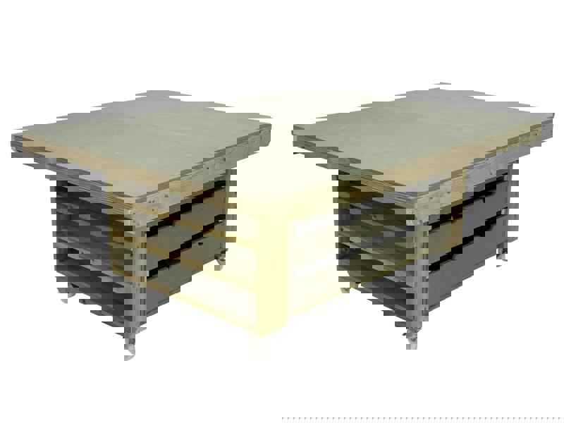 This is the perfect workstation for any creative work. It's ideal for a huge variety of arts and crafts projects, sketching, drafting and much more. For your convenience, the hobby table can be easily moved around your workshop or garage, thanks to the integrated swivel heavy-duty wheels with a brake castor of 100mm (each wheel lifting capacity 125 kg). Equipped with multi-purpose shelving beneath and on the sides, it keeps your tools and materials organized and within reach.