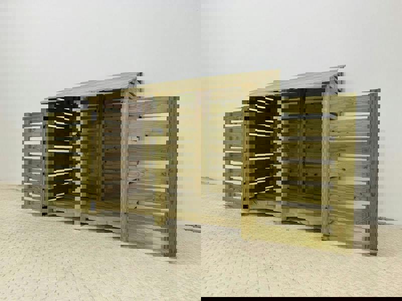 • Our wheelie bin storages are crafted from high-quality pressure-treated timber, known for its durability and resistance to decay, insects, and moisture. This treatment ensures your wheelie bin storage remains strong and long-lasting, making it perfect for outdoor use in gardens, patios, and public spaces.