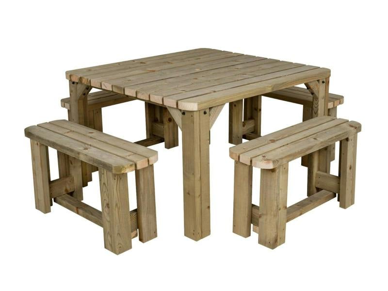 The QUADRUM Space-Saving Picnic Table with 4 Benches is a compact and durable outdoor seating solution, perfect for gardens, patios, pubs, and picnic areas. Crafted from heavy-duty, pressure-treated timber, this sturdy wooden picnic table features slide-under benches to maximize storage space. With a 41mm parasol hole and corrosion-resistant fixings, it’s built for long-lasting outdoor use. Shop now for a space-efficient and stylish picnic table!