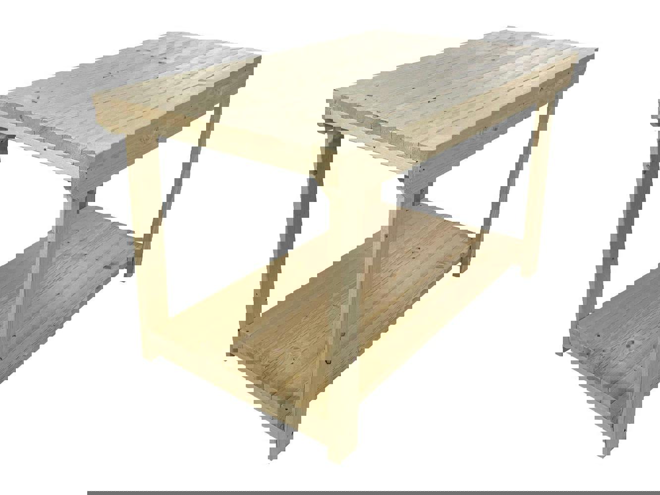The Rotem Wooden Kiln-Dry Workbench is a robust and versatile addition to any workshop or garage. Handcrafted in the UK, this workbench is constructed from construction-grade CLS C16 kiln-dried timber, ensuring exceptional strength and durability. Available in widths ranging from 1200mm to 2400mm (4ft to 8ft) and depths of 900mm or 1200mm (3ft or 4ft), it accommodates various workspace requirements. The standard height is 900mm (3ft), providing a comfortable working level. For enhanced mobility, the workbench is equipped with integrated swivel heavy-duty wheels with brake castors (100mm, each supporting up to 125kg), allowing for easy movement and secure positioning within your workspace. With a weight capacity of up to 850kg (500kg with wheels), it is designed to handle a wide range of projects. Customization options are available upon request to fit your specific needs. Each bench is supplied in a knockdown form for straightforward on-site assembly, requiring only a screwdriver. Comprehensive assembly instructions are included for your convenience.