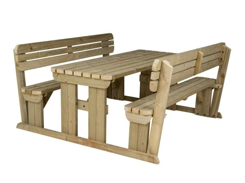 Upgrade your outdoor seating with the Alders Picnic Table & Benches Set with Backrest. This strong, sturdy wooden picnic table is built for gardens, patios, and outdoor dining areas. It is made from heavy-duty, pressure-treated timber and features a 41mm parasol hole and corrosion-resistant fixings for long-term durability. It is perfect for social gatherings, pubs, and family spaces.