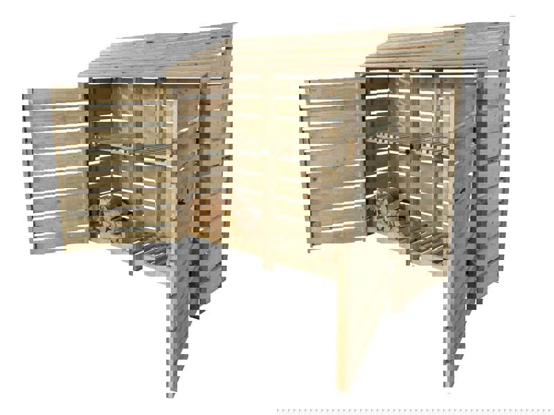 • Our wheelie bin storages are crafted from high-quality pressure-treated timber, known for its durability and resistance to decay, insects, and moisture. This treatment ensures your wheelie bin storage remains strong and long-lasting, making it perfect for outdoor use in gardens, patios, and public spaces.