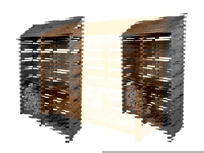 Arbor Garden Solutions Slatted Wooden Log Store with Shelf W-227cm, H-126cm or 180cm, D-88cm - Brown Finish