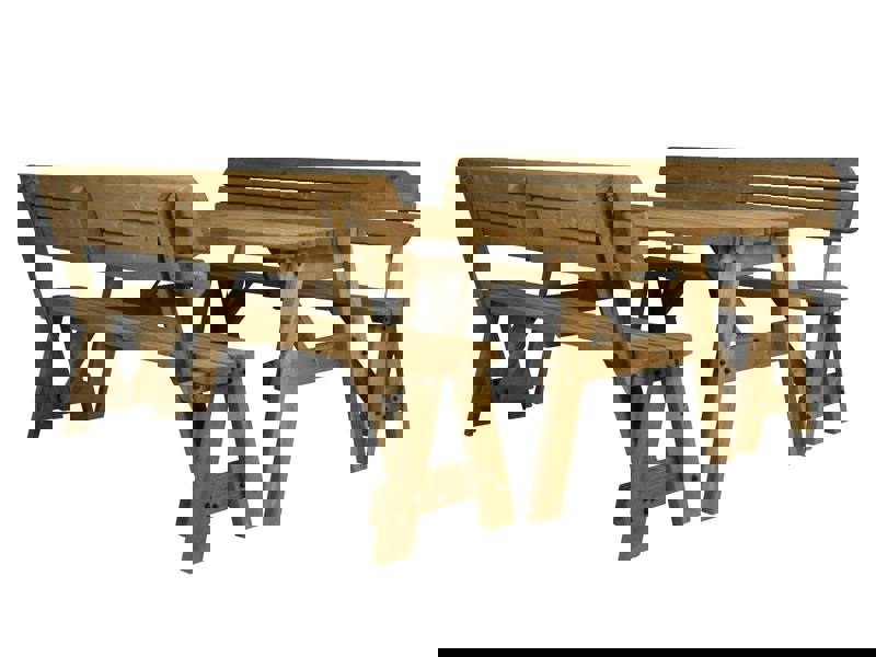 Upgrade your outdoor seating with the Victoria Picnic Table & Benches Set with Backrest. This strong, sturdy wooden picnic table is built for gardens, patios, and outdoor dining areas. It is made from heavy-duty, pressure-treated timber and features a 41mm parasol hole and corrosion-resistant fixings for long-term durability. It is perfect for social gatherings, pubs, and family spaces.
