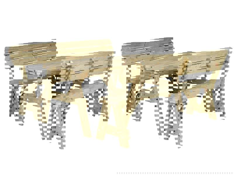Upgrade your outdoor seating with the Victoria Picnic Table & Benches Set with Backrest. This strong, sturdy wooden picnic table is built for gardens, patios, and outdoor dining areas. It is made from heavy-duty, pressure-treated timber and features a 41mm parasol hole and corrosion-resistant fixings for long-term durability. It is perfect for social gatherings, pubs, and family spaces.