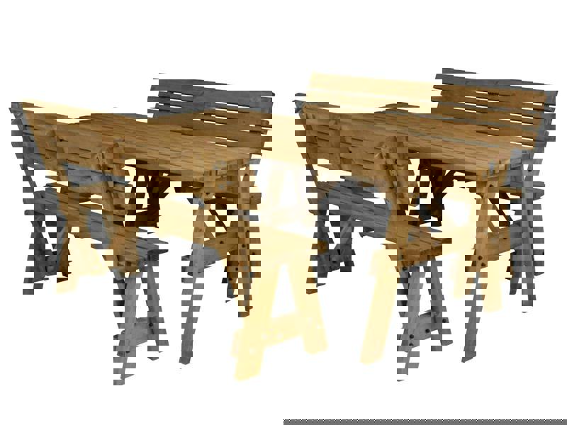 • Our picnic tables are crafted from high-quality pressure-treated timber, known for its durability and resistance to decay, insects, and moisture. This treatment ensures your picnic table remains strong and long-lasting, making it perfect for outdoor use in gardens, patios, and public spaces.