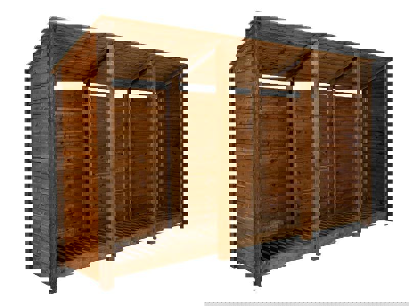 Arbor Garden Solutions Wooden Log Store (Roof Sloping Back) W-335cm, H-126cm or 180cm, D-88cm - Brown Finish